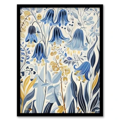 Artery8 Bluebells in Bloom Botanical Painting Ochre Blue Living Room Artwork Framed Wall Art Print A4