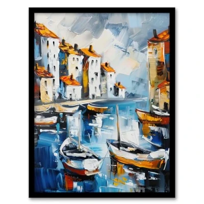 Artery8 Boats in Harbor Fishing Town Coastal Townscape Living Room Artwork Framed Wall Art Print A4