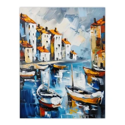 Artery8 Boats in Harbor Fishing Town Coastal Townscape Living Room Large Wall Art Poster Print Thick Paper 18X24 Inch