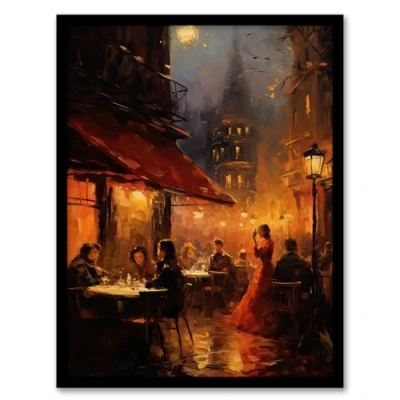 Artery8 Bohemian Artists At Bar Oil Painting 19th Century Paris Atmospheric Night Life La Boheme Opera Scene Artwork Framed Wall Art Print A4
