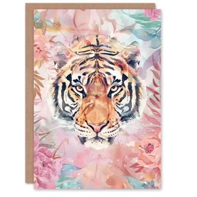 Artery8 Bohemian Tiger Floral Jungle Portrait Watercolour For Her Woman Birthday Card