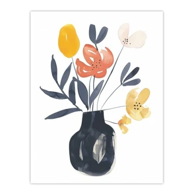 Artery8 Boho Abstract Watercolour Flower Bouquet in Vase Living Room Large Wall Art Poster Print Thick Paper 18X24 Inch