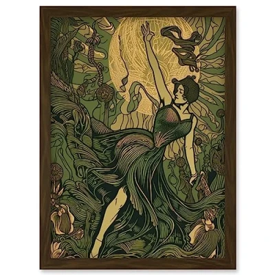 Artery8 Boho Ballerina Dancing with the Forest Moon Artwork Framed Wall Art Print A4