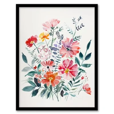 Artery8 Boho Spring Flower Bouquet Pastel Watercolour Living Room Artwork Framed Wall Art Print A4