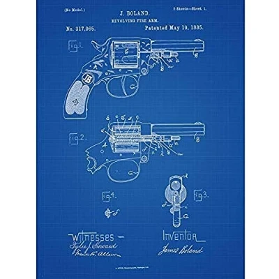 Artery8 Boland Revolving Firearm Revolver Gun Vintage 1885 Patent Plan Art Print Canvas Premium Wall Decor Poster Mural