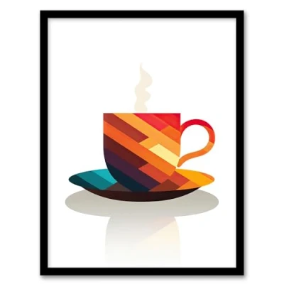 Artery8 Bold Modern Kitchen Art Coffee Cup Geometric 2D Graphic Design Minimalist Artwork Framed Wall Print A4