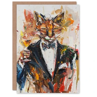 Artery8 Bond Cat Gentleman With Martini Drink Painting Blank For Him Or Her Art Birthday Card