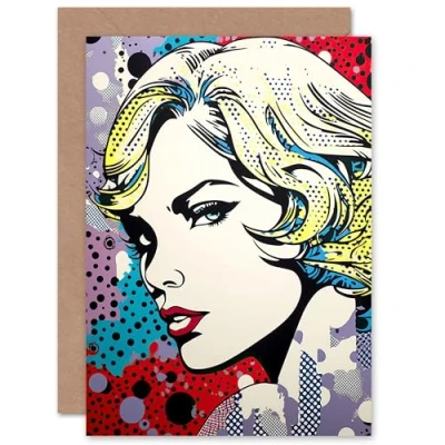 Artery8 Bond Girl Comic Book Style Polka Dot for Wife Her Mum Sister Daughter Mom Gran Nan Birthday Thank You Congratulations Blank Art Greeting Card
