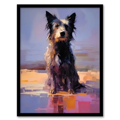 Artery8 Border Collie at the Beach Oil Painting Portrait Artwork Framed Wall Art Print A4