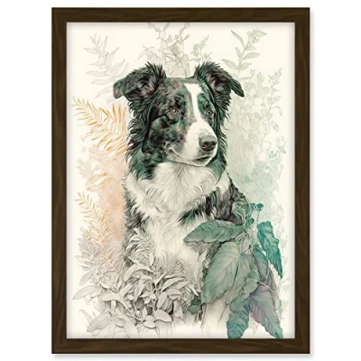 Artery8 Border Collie Dog in Field Modern Colour Pencil Portrait Illustration Artwork Framed A3 Wall Art Print