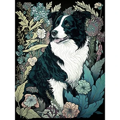 Artery8 Border Collie Dog in Wildflower Field Modern Illustration Large Wall Art Poster Print Thick Paper 18X24 Inch