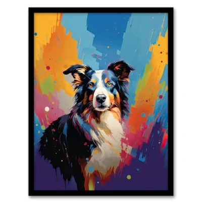 Artery8 Border Collie Dog Lover Gift Pet Portrait Colourful Artwork Painting Framed Wall Art Print A4