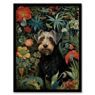 Artery8 Border Terrier Dog On Elegant Wildflower Floral Backdrop William Morris Style Pattern Artwork Framed Wall Art Print A4