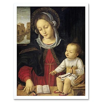 Artery8 Borgognone Madonna And Child Religious Painting Art Print Framed Poster Wall Decor 12x16 inch