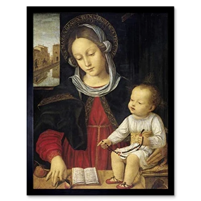 Artery8 Borgognone Madonna And Child Religious Painting Art Print Framed Poster Wall Decor 12x16 inch
