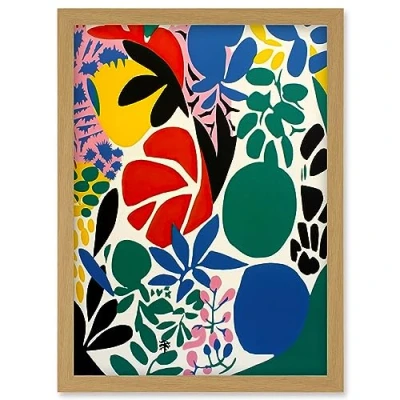 Artery8 Botanical Garden Henri Matisse Inspired Acrylic Painting Abstract Bright Shapes Artwork Framed Wall Art Print A4