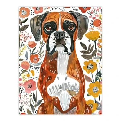 Artery8 Boxer Dog Lover Watercolour Floral Portrait Living Room Extra Large XL Wall Art Poster Print