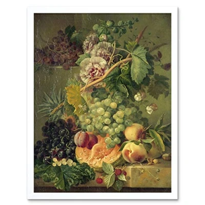Artery8 Brandt Still Life With Flowers And Fruits Painting Art Print Framed Poster Wall Decor 12x16 inch
