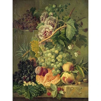 Artery8 Brandt Still Life With Flowers And Fruits Painting Premium Wall Art Canvas Print 18X24 Inch