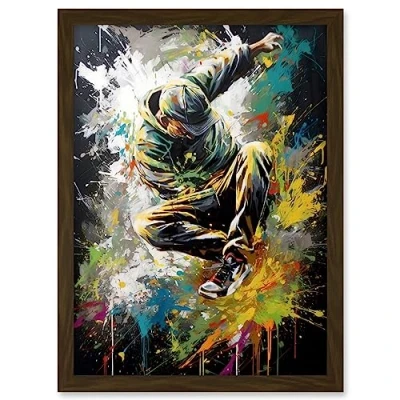 Artery8 Break Dancer B Boy Dancing Splatter Paint Portrait Artwork Framed A3 Wall Art Print