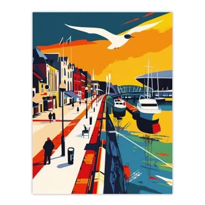 Artery8 Bright Colourful Cardiff Bay Artwork Bold Sunset Living Room Extra Large XL Wall Art Poster Print
