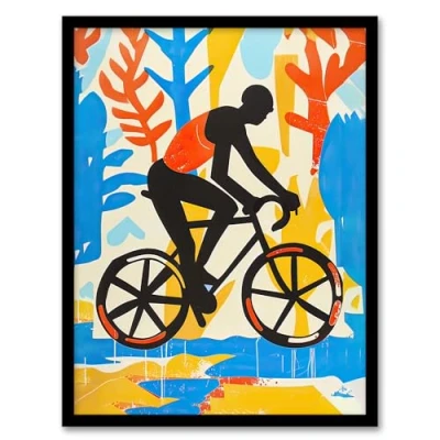 Artery8 Bright Colourful Cyclist on Bicycle Painting Bold Living Room Artwork Framed Wall Art Print A4
