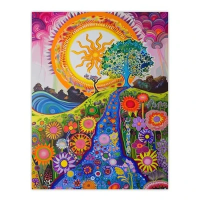 Artery8 Bright Colourful Hippy Artwork Flowers Sun Trees Living Room Extra Large XL Wall Art Poster Print