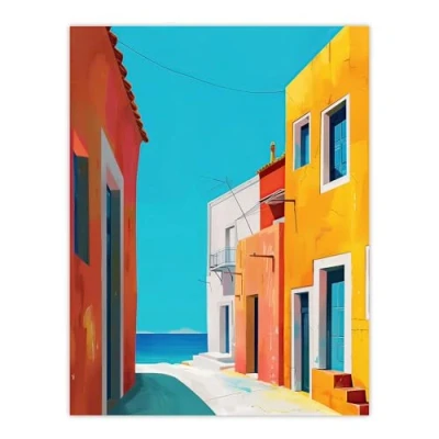 Artery8 Bright Colourful Mediterranean Italian Painting Bathroom Toilet Extra Large XL Wall Art Poster Print