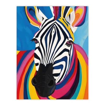 Artery8 Bright Colourful Zebra Portrait Multicoloured Pop Living Room Large Wall Art Poster Print Thick Paper 18X24 Inch