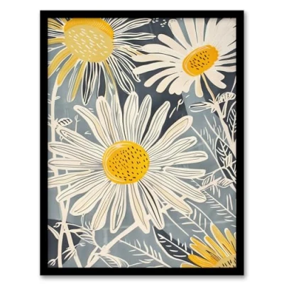 Artery8 Bright Daisy Flowers Bloom Artwork Light Floral Living Room Framed Wall Art Print A4