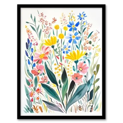 Artery8 Bright Spring Garden Flowers Floral Watercolour Living Room Artwork Framed Wall Art Print A4