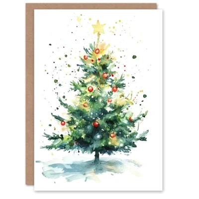 Artery8 Bright Star Decorated Tree Blank For Him Or Her Art Xmas Festive Christmas Card