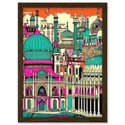 Artery8 Brighton Royal Pavilion Palace Vibrant Detailed Artwork Framed Wall Art Print A4