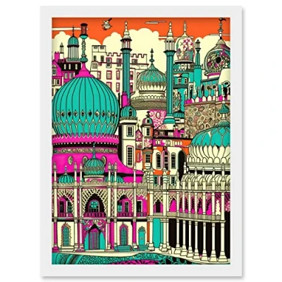 Artery8 Brighton Royal Pavilion Palace Vibrant Detailed Artwork Framed Wall Art Print A4
