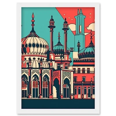 Artery8 Brighton's Royal Pavilion in Ivory Blue and Red Artwork Framed Wall Art Print A4