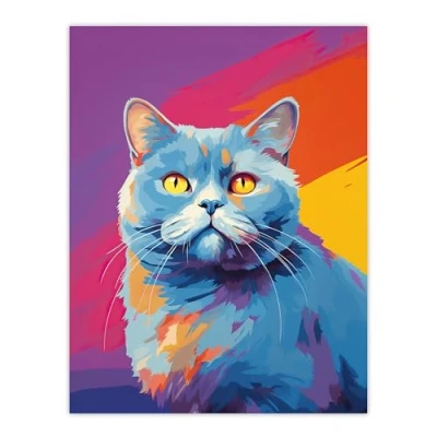 Artery8 British Shorthair Cat Lover Gift Pet Portrait Purple Orange Blue Artwork Painting Extra Large XL Wall Art Poster Print