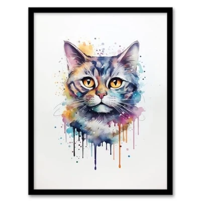 Artery8 British Shorthair Cat Lovers Gift Watercolour Pet Portrait Painting Artwork Framed Wall Art Print A4