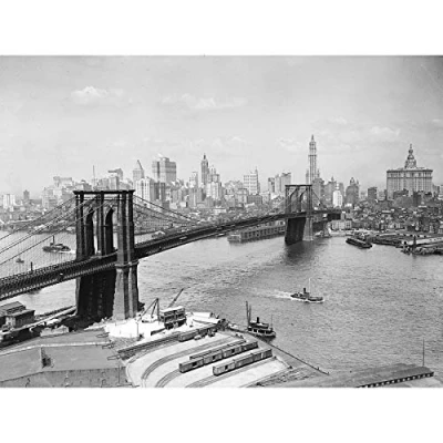 Artery8 Brooklyn Bridge New York City Skyline 1910 Photo Large Wall Art Poster Print Thick Paper 18X24 Inch