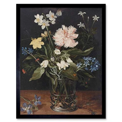 Artery8 Brueghel Still Life With Flowers In Glass Painting Art Print Framed Poster Wall Decor 12x16 inch