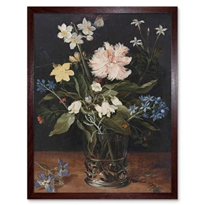 Artery8 Brueghel Still Life With Flowers In Glass Painting Art Print Framed Poster Wall Decor 12x16 inch