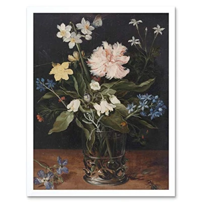 Artery8 Brueghel Still Life With Flowers In Glass Painting Art Print Framed Poster Wall Decor 12x16 inch