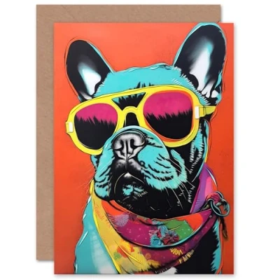 Artery8 Bulldog and Bandana Fun Bright for Husband Him Dad Son Brother Birthday Thank You Congratulations Blank Art Greeting Card
