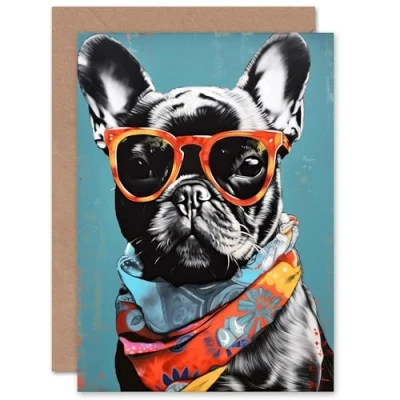 Artery8 Bulldog and Bandana Sunglasses Fun for Him or Her Man Woman Birthday Thank You Congratulations Blank Art Greeting Card