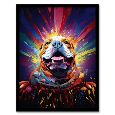 Artery8 Bulldog Dog Lover Gift Pet Portrait Colourful Artwork Painting Framed Wall Art Print A4