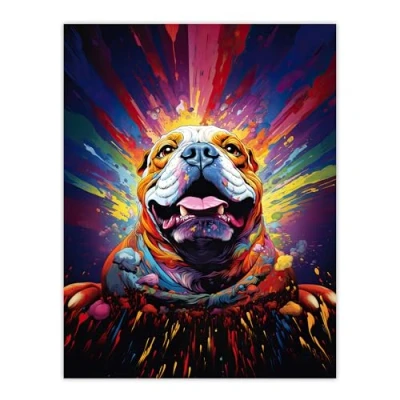 Artery8 Bulldog Dog Lover Gift Pet Portrait Colourful Artwork Painting Large Wall Art Poster Print Thick Paper 18X24 Inch