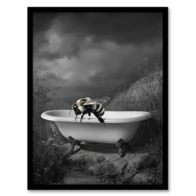 Artery8 Bumblebee Riverbank Bathtub Black White Surreal Bathroom Toilet Artwork Framed Wall Art Print A4