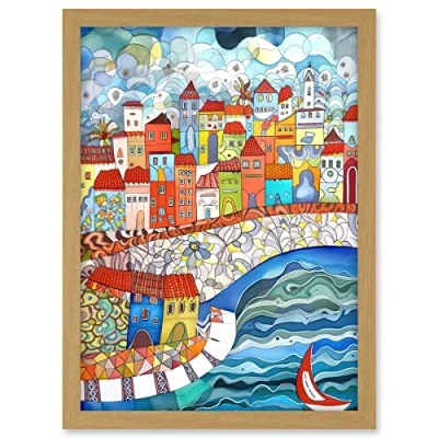 Artery8 Burano Italy Seaside Town Folk Art Artwork Framed A3 Wall Print