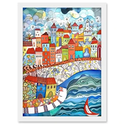 Artery8 Burano Italy Seaside Town Folk Art Artwork Framed A3 Wall Print
