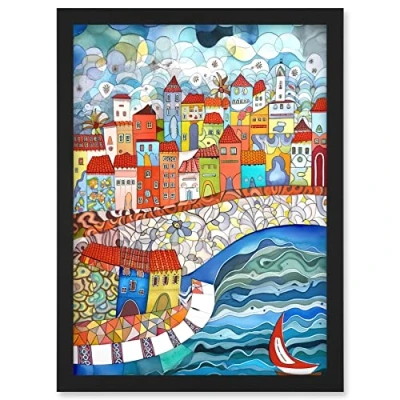 Artery8 Burano Italy Seaside Town Folk Art Artwork Framed Wall Print A4
