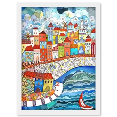 Artery8 Burano Italy Seaside Town Folk Art Artwork Framed Wall Print A4